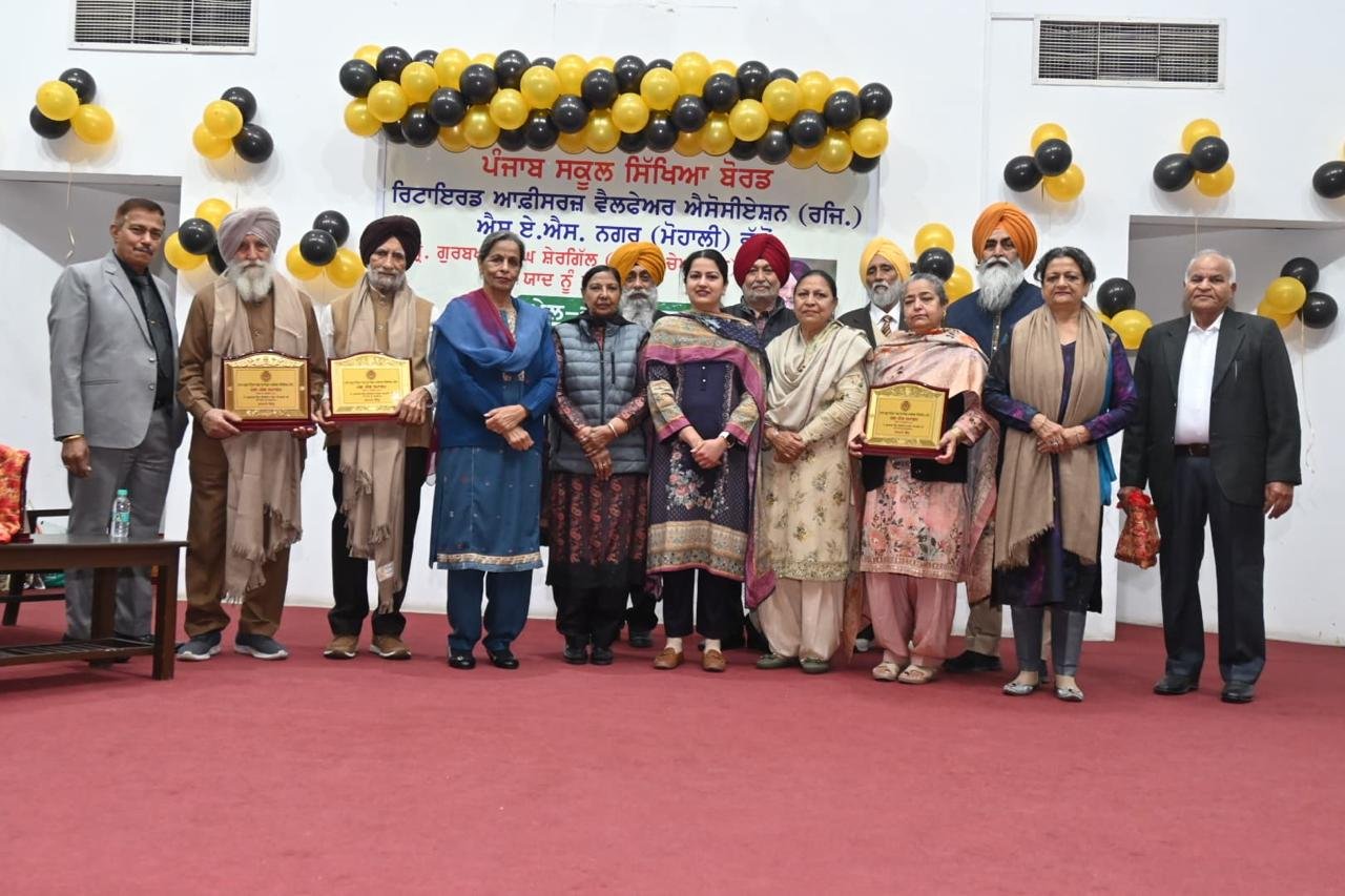 ਸਾਹਿਬਜ਼ਾਦਾ ਅਜੀਤ ਸਿੰਘ ਨਗਰ 27 ਫਰਵਰੀ (ਅਮਨ ਗਿੱਲ) : ਪੰਜਾਬ ਸਕੁਲ ਸਿੱਖਿਆ ਬੋਰਡ ਦੇ ਮਰਹੁ੍ਮ ਚੇਅਰਮੈਨ ਗੁਰਬਖਸ ਸਿੰਘ ਸੇਰਗਿੱਲ ਨੂੰ ਸਮਰਪਿਤ ਪੰਜਾਬ ਸਕੂਲ ਸਿੰਖਿਆ ਬੋਰਡ ਰਿਟਾਇਰਡ ਅਫਸਰ ਐਸੋਸੀਏਸਨ ਵੱਲੋਂ ਕਰਵਾਇਆ ਗਿਆ ਮੇਲਜੋਲ ਸ੍ਮਾਗਮ ਯਾਦਗਾਰੀ ਹੋ ਨਿਬੜਿਆ। ਇਸ ਮੌਕੇ ਐਸੋਸੀਏਸਨ ਦੇ ਸੇਵਾ ਮੁਕ਼ਤ 5 ਸੀਨੀਅਰ ਅਧਕਾਰੀਆਂ ਨੂੰ ਸਨਮਾਨਿਤ ਕੀਆ ਗਿਆ।
