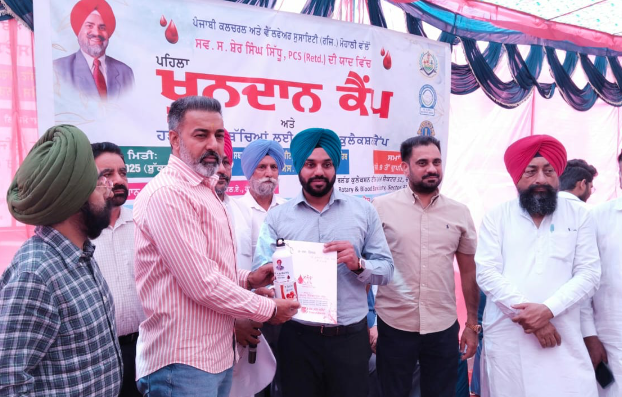 ਸਾਹਿਬਜ਼ਾਦਾ ਅਜੀਤ ਸਿੰਘ ਨਗਰ 8 ਨਵੰਬਰ (ਚਰਨ ਸਿੰਘ ਮੈਣ ਮਾਜਰੀ) :ਪੰਜਾਬੀ ਕਲਚਰਲ ਅਤੇ ਵੈਲਫੇਅਰ ਸਟ ਐਸ ਏ ਐਸ ਨਗਰ ਵੱਲੋਂ ਸਵਰਗੀ ਸ. ਸ਼ੇਰ ਸਿੰਘ ਸਿੱਧੂ ਪੀਸੀਐਸ ਰਿਟ ਦੀ ਯਾਦ ਵਿੱਚ ਪਹਿਲਾ ਖੂਨਦਾਨ ਕੈਂਪ ਲਾਇਆ ਗਿਆ। ਜਿਸ ਵਿੱਚ ਸਰਕਾਰੀ ਮੈਡੀਕਲ ਕਾਲਜ ਹਸਪਤਾਲ ਸੈਕਟਰ- 32 ਅਤੇ ਰੋਟਰੀ ਬਲੱਡ ਬੈਂਕ ਸਟਰ 37 ਚੰਡੀਗੜ੍ਹ ਦੀਆਂ ਟੀਮਾਂ ਨੇ 231 ਯੂਨਿਟ ਖੂਨ ਇਕੱਤਰ ਕੀਤਾ। ਸਵਰਗੀ ਸ. ਸ਼ੇਰ ਸਿੰਘ ਦੇ ਪਰਿਵਾਰਕ ਮੈਂਬਰ ਗੁਰਸਿਮਰਨ ਸਿੰਘ ਸਿੱਧੂ, ਬਲਕਾਰ ਸਿੰਘ ਸਿੱਧੂ ਆਈਪੀਐਸ (ਰਿਟਾਇਰਡ), ਹਰਮੇਲ ਸਿੰਘ ਸਰਾਅ ਸਟੇਟ ਟਰਾਂਸਪੋਰਟ ਕਮਿਸ਼ਨਰ (ਰਿਟਾ.), ਗੁਰਮੰਦਰ ਸਿੰਘ ਪੀਸੀਐਸ, ਸਤਵੰਤ ਸਿੰਘ ਸਿੱਧੂ ਡੀਐਸਪੀ, ਸ. ਸਰਤਾਜ ਸਿੰਘ ਗਿੱਲ ਸੀਨੀਅਰ ਡਿਪਟੀ ਐਡਵੋਕੇਟ ਜਨਰਲ ਪੰਜਾਬ, ਇੰਦਰ ਮੋਹਨ ਸਿੰਘ, ਦਰਸ਼ਨ ਸਿੰਘ ਸਿੱਧੂ ਅਤੇ ਮਨਜੀਤ ਸਿੰਘ ਡੀਏ ਦੀ ਅਗਵਾਈ ਵਿੱਚ ਖੂਨਦਾਨੀਆਂ ਨੇ ਉਤਸ਼ਾਹ ਨਾਲ ਵੱਡੇ ਪੱਧਰ ‘ਤੇ ਖੂਨਦਾਨ ਕੀਤਾ। ਖੂਨਦਾਨ ਕੈਂਪ ਦੇ ਰੌਣਕ ਵਧਾਉਣ ਲਈ ਮਿਊਸਪਲ ਕੌਂਸਲਰ ਸਰਬਜੀਤ ਸਿੰਘ ਸਮਾਣਾ, ਕੁਲਜੀਤ ਸਿੰਘ ਬੇਦੀ, ਵਨੀਤ ਵਰਮਾ, ਹਰਸਿਮਰਨ ਸਿੰਘ ਬਲ ਡੀਐਸਪੀ ਸਿਟੀ-2, ਜੀਪੀ ਸਿੰਘ ਡੀਐਸਪੀ, ਡਾ. ਐਸਐਸ ਭਮਰਾ, ਆਰਪੀ ਸ਼ਰਮਾ, ਗੁਰਮੁਖ ਸਿੰਘ ਸੋਹਲ, ਪਰਮਜੀਤ ਸਿੰਘ ਕਾਹਲੋ, ਰਾਜਾ ਕੰਵਰਜੋਤ ਸਿੰਘ, ਗੌਰਮੈਂਟ ਟੀਚਰ ਯੂਨੀਅਨ ਵੱਲੋਂ ਸੁਰਜੀਤ ਸਿੰਘ ਅਤੇ ਸੁਖਵਿੰਦਰਜੀਤ ਸਿੰਘ ਗਿੱਲ, ਗੁਰਮੀਤ ਸਿੰਘ ਸ਼ਾਮਪੁਰ, ਰਜੇਸ਼ ਲਖੋਤਰਾ, ਜਸਪਾਲ ਸਿੰਘ ਦਿਓਲ, ਜਸਪਾਲ ਸਿੰਘ ਮਟੌਰ ਅਤੇ ਉੱਘੇ ਪੰਜਾਬੀ ਗਾਇਕ ਸਿੱਪੀ ਗਿੱਲ ਖੂਨਦਾਨ ਲੈ ਕੇ ਪਹੁੰਚੇ। ਪੰਜਾਬੀ ਕਲਚਰ ਅਤੇ ਵੈਲਫੇਅਰ ਸੋਸਾਇਟੀ ਦੇ (ਰਜਿ.) ਦੇ ਪ੍ਰਧਾਨ ਅਕਵਿੰਦਰ ਸਿੰਘ ਗੋਸਲ, ਜਨਰਲ ਸਕੱਤਰ ਦਵਿੰਦਰ ਸਿੰਘ ਜੁਗਨੀ, ਵਿੱਤ ਸਕੱਤਰ ਜਗਤਾਰ ਸਿੰਘ ਜੱਗੀ ਦੀ ਅਗਵਾਈ ‘ਚ ਸੋਸਾਇਟੀ ਦੇ ਮੈਂਬਰ ਇੰਜੀਨੀਅਰ ਗੁਰਜੰਟੀ ਸਿੰਘ, ਪਰਮਿੰਦਰ ਸਿੰਘ ਭਿੰਦਾ ਚੁੰਨੀ, ਅਮਰੀਕ ਸਿੰਘ ਵਿਰਕ, ਗੁਰਵਿੰਦਰ ਸਿੰਘ ਬਿੱਟੀ ਸੋਹਲ, ਬਿਕਰਮਜੀਤ ਸਿੰਘ ਵਿੱਕੀ, ਬਲਵਿੰਦਰ ਸਿੰਘ ਭਾਊ, ਸੁਦਾਗਰ ਸਿੰਘ ਸੰਮੀ ਚੁੰਨੀ ਅਤੇ ਰਣਜੀਤ ਸਿੰਘ ਨੇ ਖੂਨਦਾਨ ਕੈਂਪ ਨੂੰ ਬਹੁਤ ਹੀ ਸਟੱਜ ਢੰਗ ਨਾਲ ਨੇਪਰੇ ਚਾੜਿਆ ਖੂਨਦਾਨ ਕੈਂਪ ਦੀ ਸਫਲਤਾ ਲਈ ਲਾਇਨਸ ਕਲੱਬ ਪੰਚਕੁਲਾ ਪ੍ਰੀਮੀਅਮ ਅਤੇ ਟਰੇਡਰ ਮਾਰਕੀਟ ਵੈਲਫੇਅਰ ਸੋਸਾਇਟੀ ਫੇਜ਼ ਥਰੀ ਟੂ ਦਾ ਵਿਸ਼ੇਸ਼ ਯੋਗਦਾਨ ਰਿਹਾ।