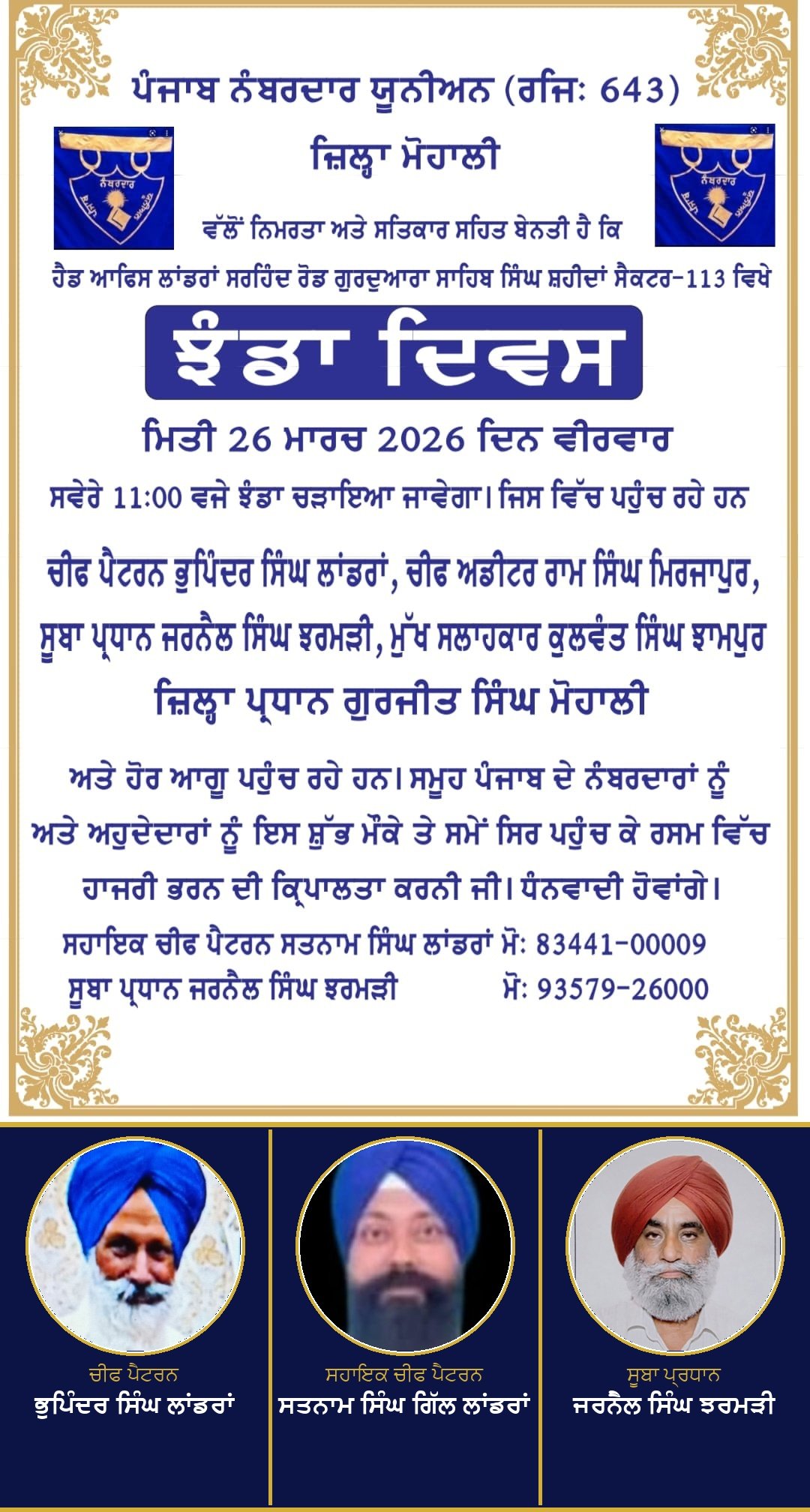 ਨੈਸ਼ਨਲ ਵਿਰਸਾ ਸੰਭਾਲ ਗੱਤਕਾ ਮੁਕਾਬਲਾ-2026 ਵਿਸਾਖੀ ਵਾਲੇ ਦਿਨ 7ਵੇਂ ਪਾਤਸ਼ਾਹ ਸ੍ਰੀ ਗੁਰੂ ਹਰਿ ਰਾਏ ਸਾਹਿਬ ਗੁਰਦੁਆਰਾ ਅੰਬ ਸਾਹਿਬ ਫੇਜ-8 ਮੋਹਾਲੀ ਵਿਖੇ ਹੋਵੇਗਾ 14 ਅਪ੍ਰੈਲ ਨੂੰ : ਜ਼ਿਲ੍ਹਾ ਪ੍ਰਧਾਨ ਅਕਵਿੰਦਰ ਸਿੰਘ ਗੋਸਲ